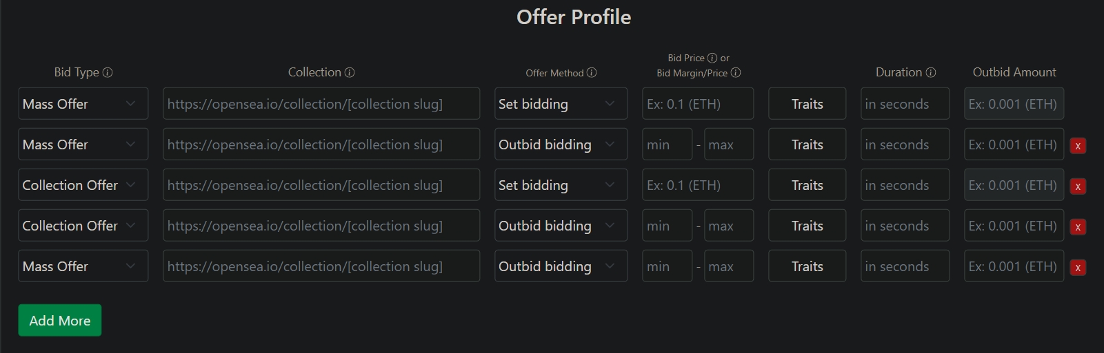 The fields in Client page is what your profile is. They determine what collection you want to bid, and how you want to bid on them. There are a multiple settings that can be changed.